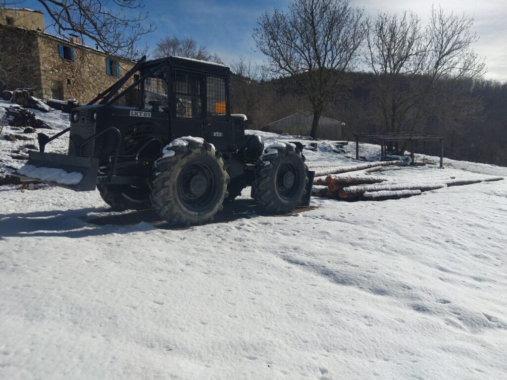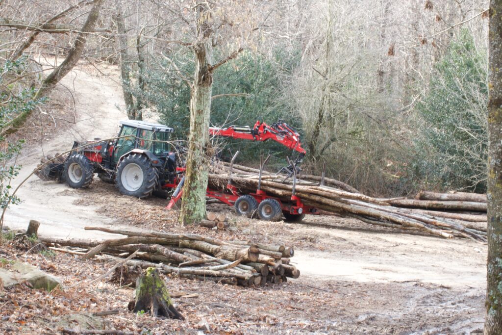 Le débardage est assuré par le Mas forestier à l’aide d’un débardeur forestier LKT 81 Turbo équipé de deux treuils. Ce poste constitue l’un des niveaux de risque les plus élevés d’un chantier forestier. Le choix d’un débardeur dédié répond à un objectif prioritaire : réduire les risques humains et mécaniques tout en garantissant la continuité des opérations en terrain contraint.