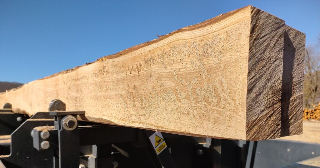 Certaines essences feuillues (merisier, frêne, chêne, hêtre) peuvent être sciées lorsque des arbres adaptés sont présents. Ces bois ne font pas l’objet d’une production standardisée. La tarification est étudiée au cas par cas selon l’essence, le diamètre, la qualité, le rendement matière et l’usage envisagé.